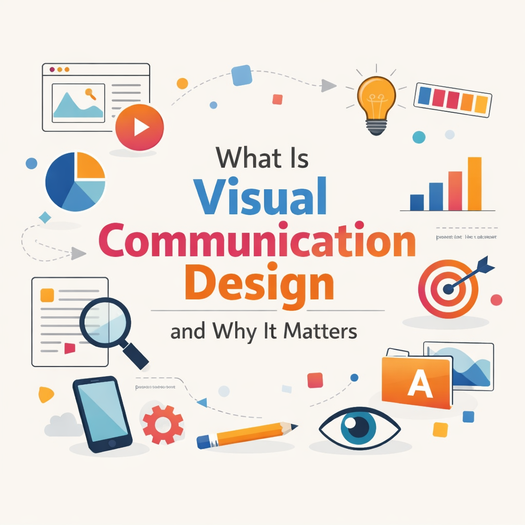 Visual communication design means arranging visual elements in a way that feels clear and natural. It focuses on how information is shown, not just what is said.